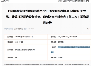【綿陽(yáng)正信公司·招標(biāo)部消息】受四川省新華強(qiáng)制隔離戒毒所/四川省綿陽(yáng)強(qiáng)制隔離戒毒所委托由我公司招標(biāo)代理部代理的“四川省新華強(qiáng)制隔離戒毒所/四川省綿陽(yáng)強(qiáng)制隔離戒毒所辦公用品、計(jì)算機(jī)及周邊設(shè)備維修、印制各類(lèi)資料定點(diǎn)(第二次)”于2020年7月13日采購(gòu)與招標(biāo)網(wǎng)掛網(wǎng)采用詢(xún)價(jià)方式招標(biāo),下圖為采購(gòu)與招標(biāo)網(wǎng)掛網(wǎng)截圖,該項(xiàng)目于7月20日在綿陽(yáng)正信工程造價(jià)咨詢(xún)有限公司進(jìn)行開(kāi)評(píng)標(biāo)活動(dòng),預(yù)祝開(kāi)標(biāo)順利為采購(gòu)人招到滿意的單位。